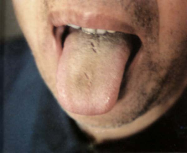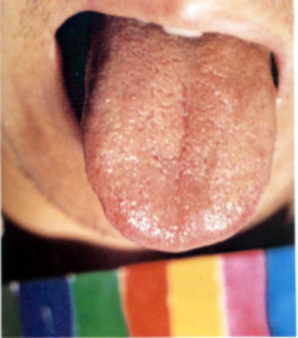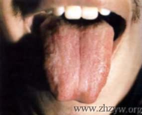 形象 舌淡红。(照片偏红)苔薄白,夹有淡黄色。