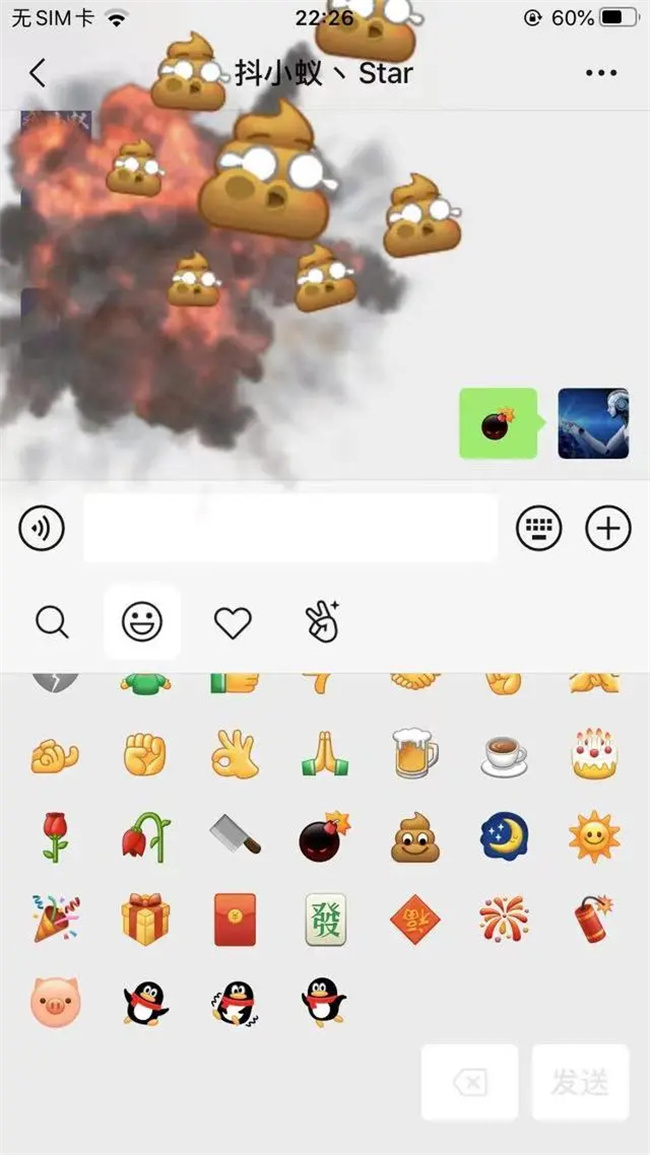 3. 这时如果好友发送来“炸弹”的表情包时,手机屏幕就会显示出“被炸的便便”表情包,这时就算成功。